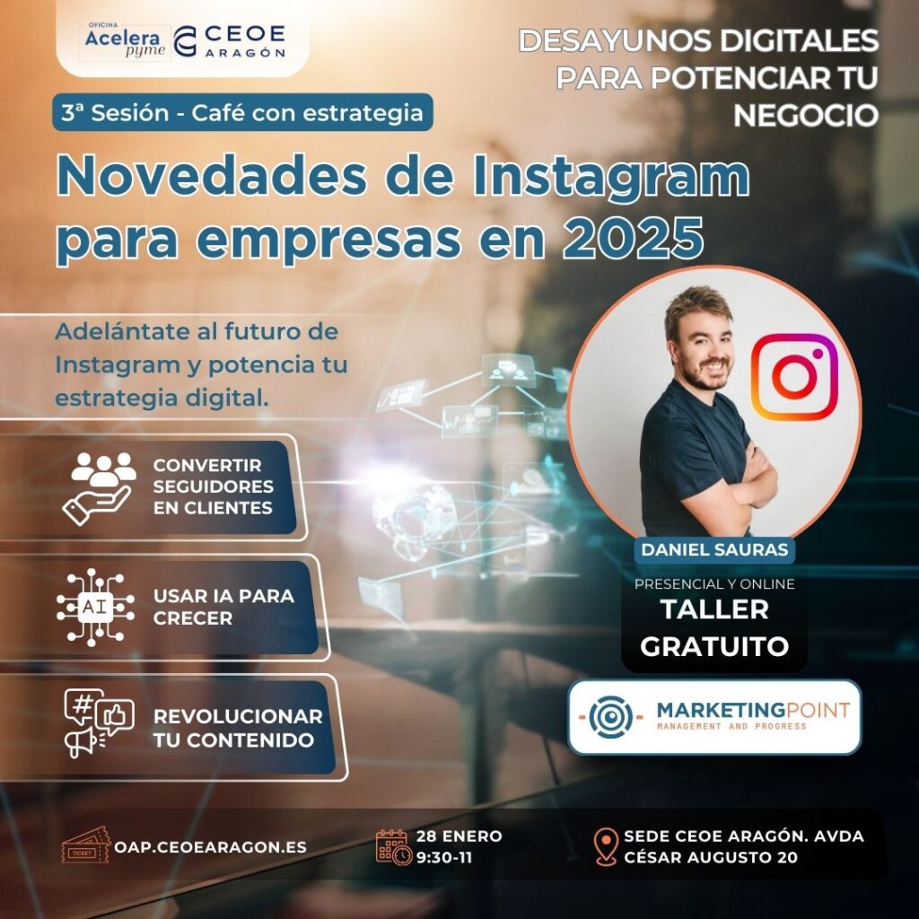 Instagram sigue evolucionando como una de las plataformas más influyentes para las empresas. Con las novedades previstas para 2025, desde el uso de inteligencia artificial hasta herramientas avanzadas de comercio electrónico, esta charla te permitirá estar un paso adelante y aprovechar al máximo esta red social.