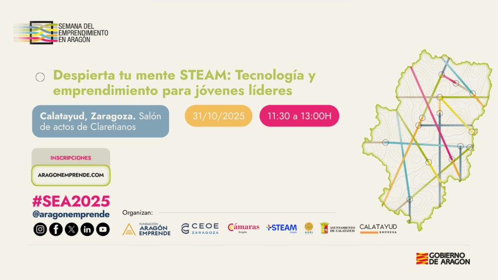 En el marco de la Semana del Emprendimiento que organiza Fundación Aragón Emprende, programamos una jornada diseñada para encender la chispa de la curiosidad en toda la comunidad educativa —con especial foco en los más jóvenes— y despertar vocaciones en el apasionante universo STEAM (Ciencia, Tecnología, Ingeniería, Arte y Matemáticas). Un ámbito con gran proyección y demanda, clave para el presente y decisivo para el futuro.