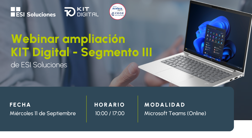 Te invitamos a conocer las últimas novedades del KIT Digital, que ahora ofrece mayores beneficios para las empresas del Segmento III. En este webinar gratuito, te explicaremos en detalle la reciente ampliación del bono, que ha pasado de 2,000€ a 3,000€, y te presentaremos la nueva solución de Puesto de Trabajo Seguro, diseñada para mejorar la ciberseguridad de tu empresa. Dos […]
