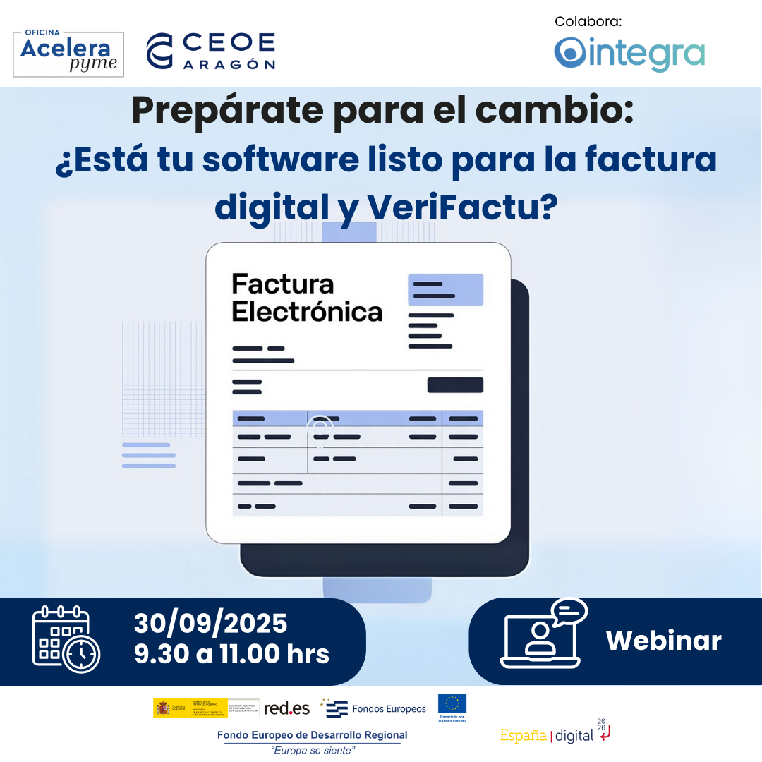📆30 de septiembre de 2025 ⏰9.30 hrs. – 11.00 hrs. 💻 |📍On Line La cuenta atrás ya ha empezado, ¡VeriFactu está aquí! ¿Aun no entiendes la ley antifraude? En solo 1 minuto te lo dejamos claro Ver video La mayoría de los autónomos y empresas que emiten facturas aún no están aplicando este nuevo cambio […]