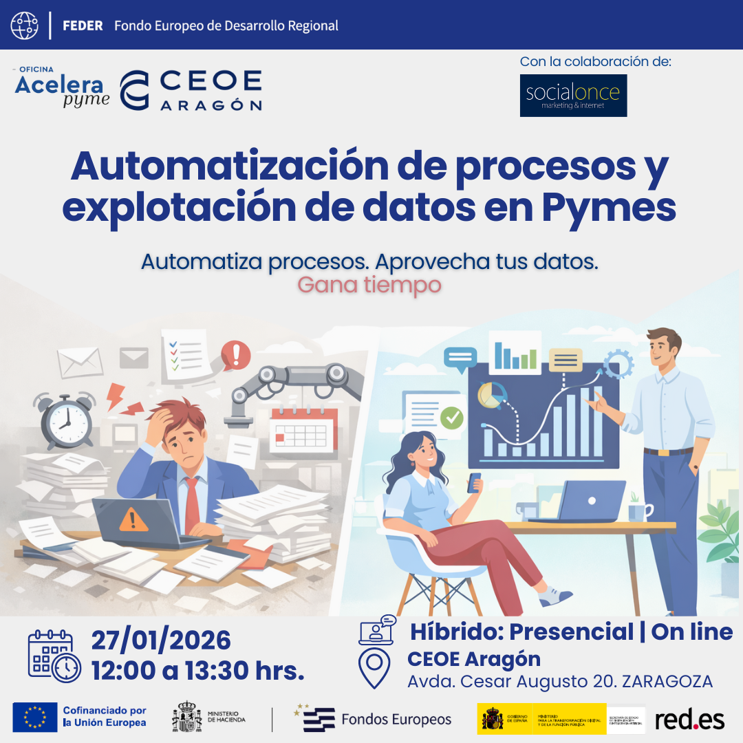¿Tu empresa sigue dedicando demasiado tiempo a tareas manuales? ¿Te gustaría mejorar la eficiencia y tomar mejores decisiones con datos reales? En esta jornada que puedes seguir de manera presencial u online, de la mano de nuestros colaboradores de SOCIALONCE, descubrirás cómo la automatización de procesos y la explotación de datos pueden ayudarte a optimizar […]